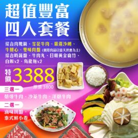 超值豐富 四人套餐3388: ✅ 綜合肉塊鍋 – 牛大骨熬煮12小時 … Read More