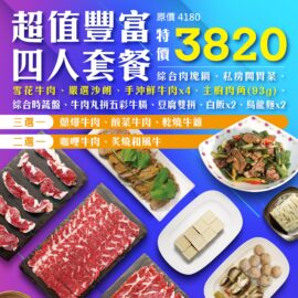 超值豐富 四人套餐3820: ✅ 開胃私房菜 ✅ 綜合肉塊鍋 – 牛 … Read More